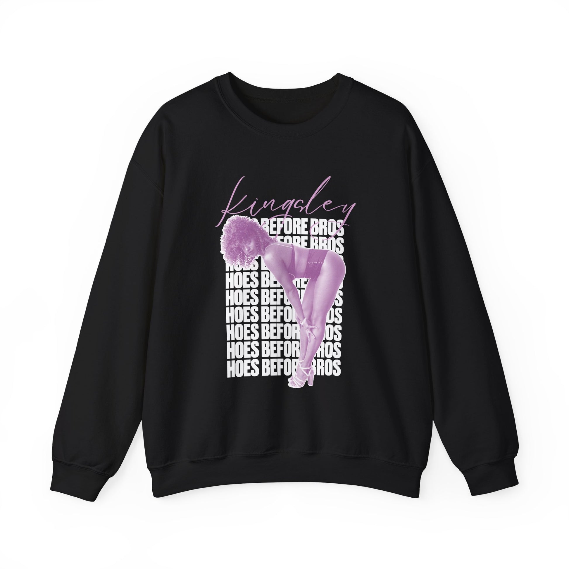 This cozy crewneck brings bold attitude into a soft, everyday silhouette. Midweight 50/50 cotton-poly fabric drapes cleanly while the ribbed collar and double-needle stitching keep the shape wash after wash. The front graphic layers repeating text with a stylized purple heel-and-leg illustration for a sassy, confident look, and a small script motif on the wrist adds a personalized touch. Subtle details — tear-away label, tubular knit construction, and OEKO‑TEX certified dyes — make it comfortable and responsibly produced. Wear it to lounge, run errands, or layer under a jacket when you want to make a statement without trying too hard.